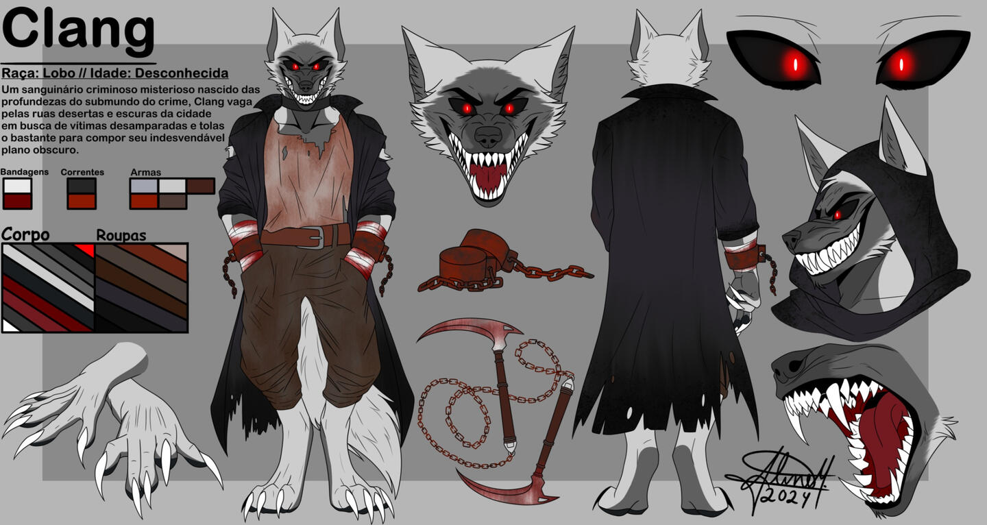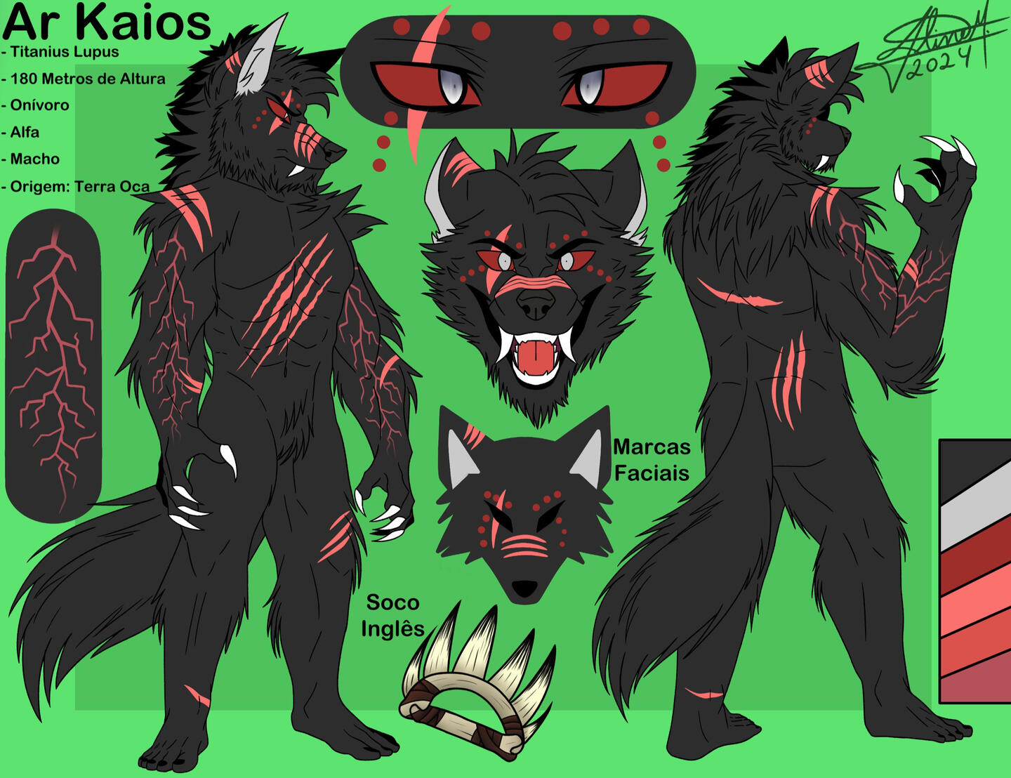 A ficha já inclui: Descrição e paleta, corpo inteiro de frente, olhos, mandíbulas e ícone de perto
